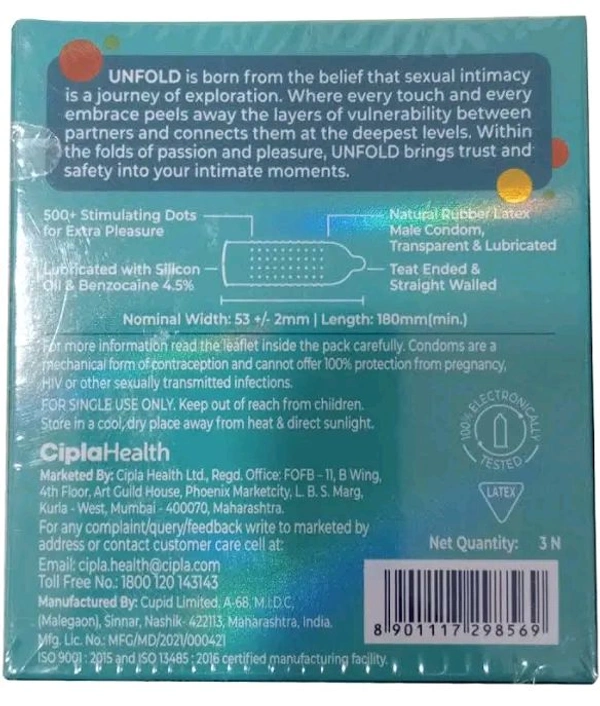 Experience intimate moments like never before with Unfold Extended Time Condoms, available exclusively at Om Narayan Medical Hall. Specifically crafted to enhance stamina and prolong pleasure, these premium condoms are perfect for those who value both performance and protection. Whether you're looking to deepen your connection or simply enjoy the moment longer, Unfold Extended Time Condoms have got you covered.